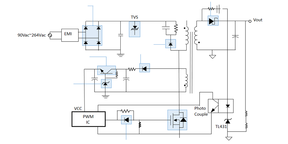 電源 電源產品發展的趨勢是空間越來越小,功率越來越大,從而要求內部使用的分立器件也需要追隨這樣的趨勢來迭代更新。揚杰科技抓住機遇,成功開發出整流橋、mosfet、快恢復二極管等產品,并已經成功量產上市,在手機充電器、PC電源、服務器電源等領域得到廣泛應用。