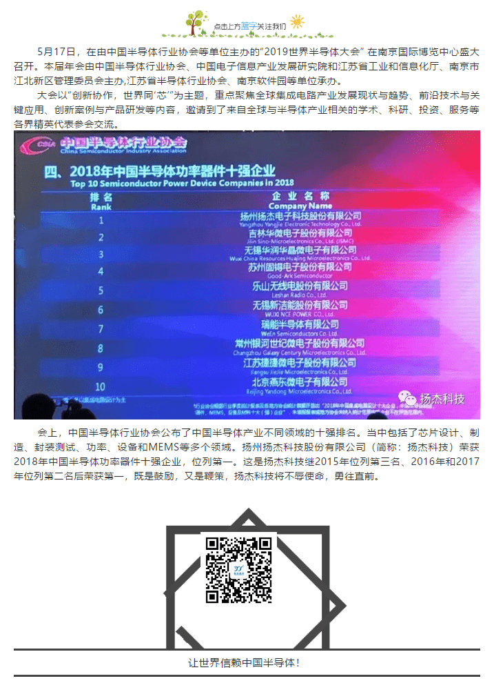 2018年中國半導(dǎo)體功率器件十強企業(yè)排名:揚杰科技第一